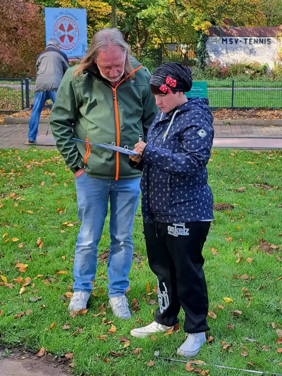 Eine Wertungsrunde auf Beton durfte selbstverständlich auch nicht fehlen, ebenso wenig wie ein paar Hindernisse, die in ungewöhnlichem Gewande auftraten. Letzteres erklärt dann vielleicht die vielfältigen Zahlen der Ergebnisse (siehe Homepage), die aber an diesem Tage nicht gar so wichtig waren. Eine geloste Paarwertung ergab verwunderte Menschen mit Urkunden in den Händen, so sollte es diesmal sein.