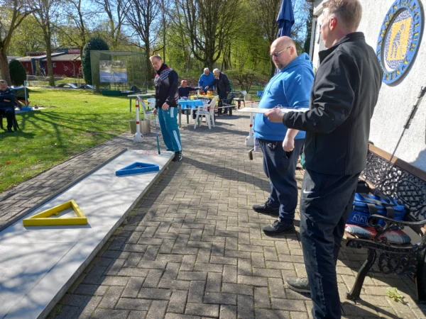 Der Spieltag am Sonntagmorgen zeigt sich leider von seiner angekündigten Seite. Das Thermometer zeigte nur ganz wenige Striche über dem Gefrierpunkt. Bälle wurde noch einmal getauscht oder wanderten in die Hosentaschen. So mancher Gürtel musste erst einmal enger gezogen werden.