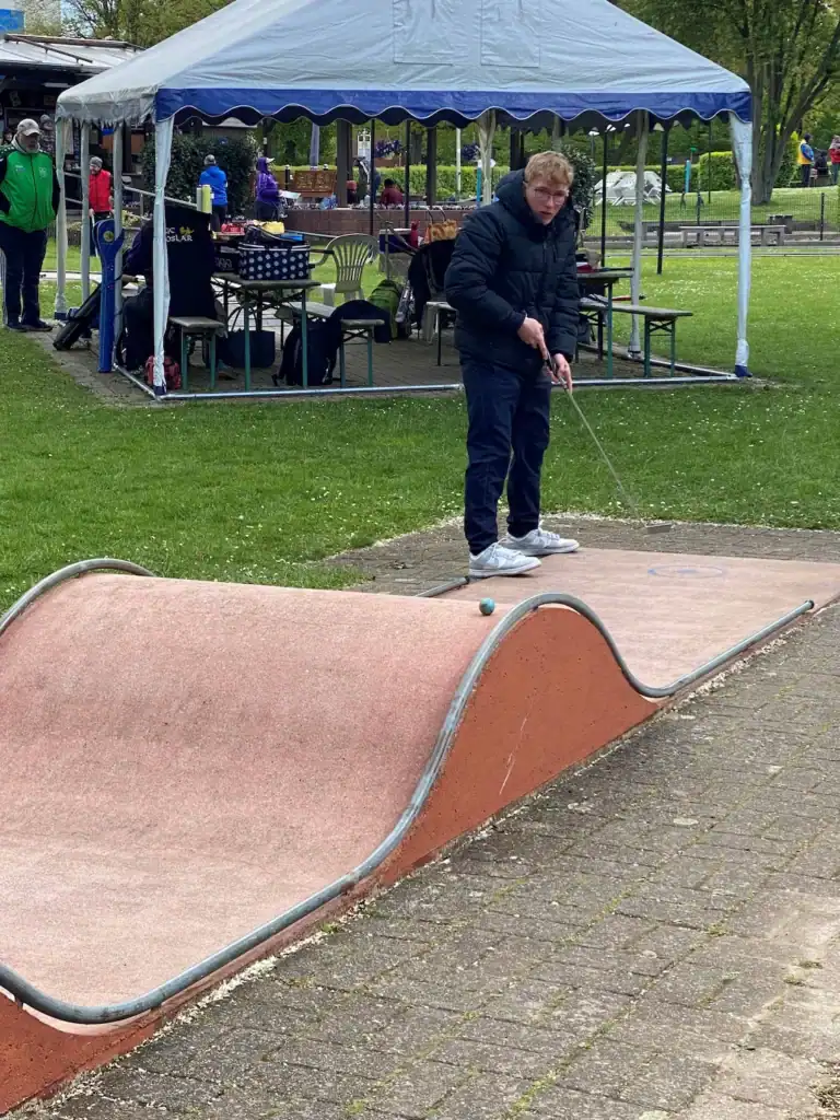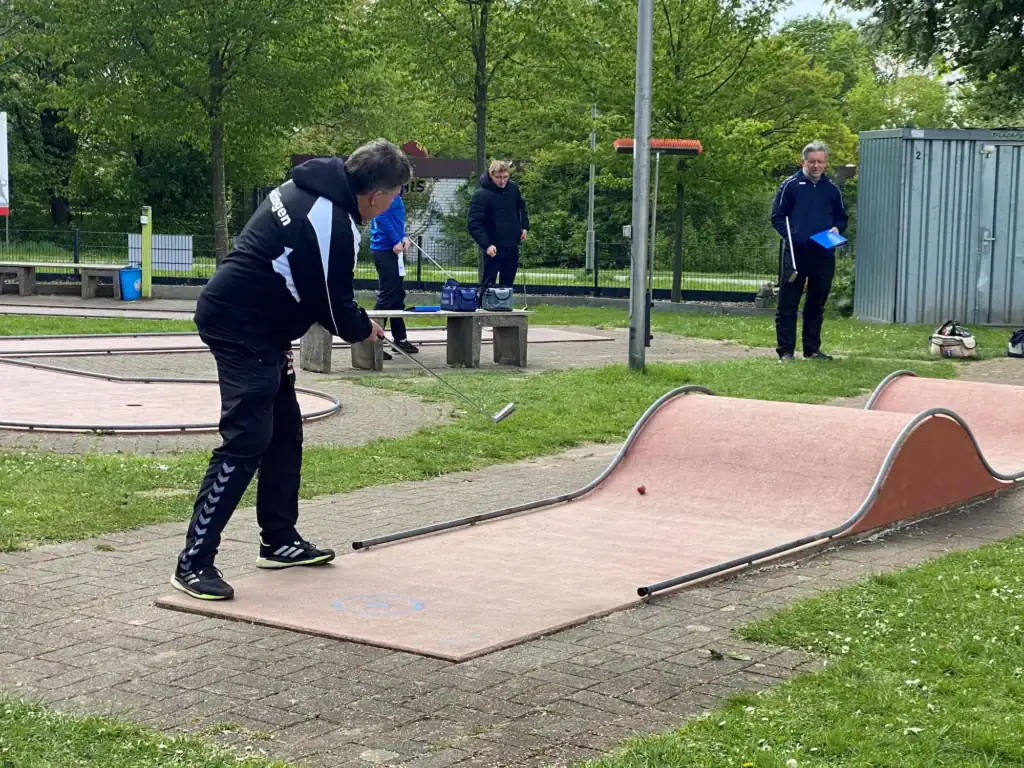 Mitte April, zwischen den ersten beiden Punktspielen ist meist Ranglistenwochenende. Dieses Jahr finden die Deutschen Meisterschaften in der Kombination ausschließlich auf dem System Beton statt und deshalb spielen wir dieses Jahr die Qualifikation entsprechend auch auf den 12m langen Betonbahnen. Die Seniorenmannschaften haben nach der Quali in der Celler Halle auch wieder neun Teams am Start. Der BGC Goslar und der BGC Wolfsburg schafften den Aufstieg, Glückwunsch dazu. In Hannover konnte man auch die neue Platzwartin Sabine begrüßen, welche in kurzer Zeit, schon einiges in ihrem Shop verändert hat. So gibt es auch hier jetzt leckere Snacks für zwischendurch und die nette und herzliche Art von Sabine kommt sehr gut an. Weiter viel Spaß unter den Minigolfern liebe Biene. Am Samstag musste man dann feststellen, dass die zweite Mannschaft aus Göttingen komplett verhindert war. Es gingen also nur 8 Teams an den Start. Aber wer waren die Favoriten dieses Jahr? Der TSV Salzgitter, die Peiner und natürlich das Team Göttingen mussten hier genannt werden. Da die Verbandsliga aber hier schon den ersten Spieltag absolviert hat, war man gespannt, ob die Mannschaften aus Goslar, Bad Nenndorf oder Northeim vielleicht oben mitspielen konnten?