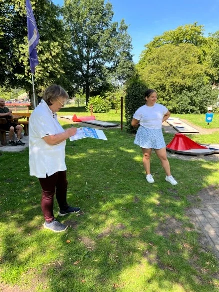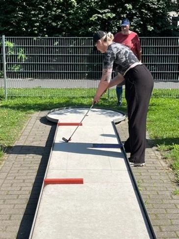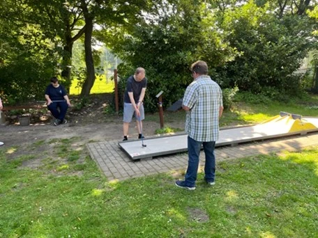 Bei strahlendem Sonnenschein und sommerlichen Temperaturen starten pünktlich um 10:00 Uhr die Spielgruppen der insgesamt 16 Teilnehmerinnen und Teilnehmer.