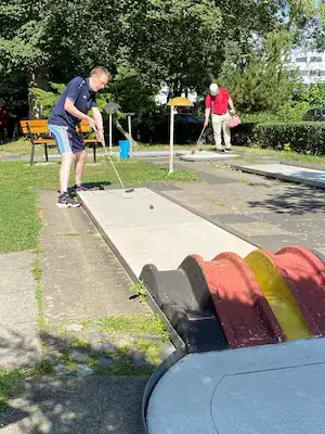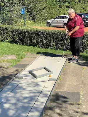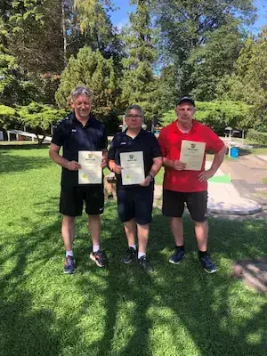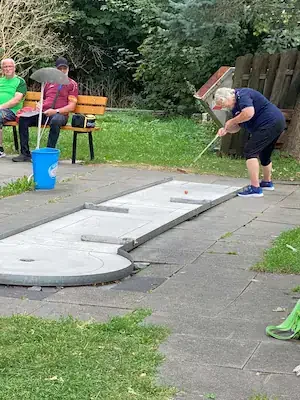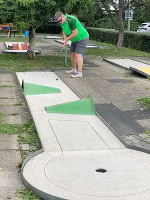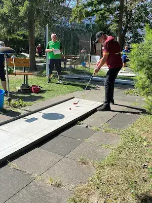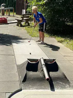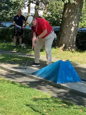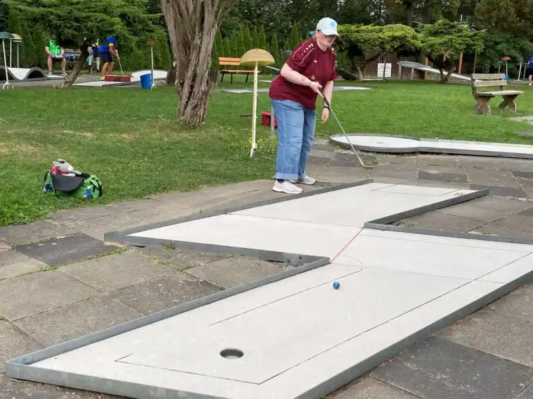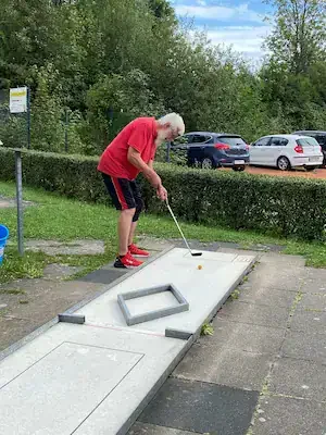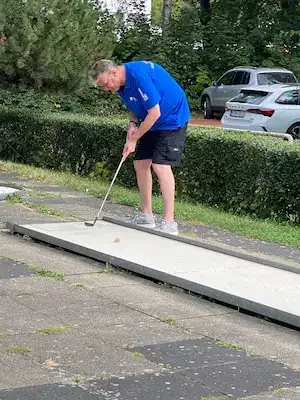 Zum 5. Spieltag der LL Süd trafen sich die 5 Mannschaften auf der Anlage des 1. MGC Göttingen. Ein Blick auf die Tabelle und man stellte schnell fest das in dieser Staffel nichts mehr passieren würde. Lohfelden als Aufsteiger mit nur 2 Punkten konnte den Abstieg nicht mehr verhindern und auch für Kassel war nicht mehr drin als Platz 4. Mit dem Heimspiel vor der Brust war auch für Göttingen der dritte Platz sicher und den Vizetitel ging an die Wolfsburger. Meister war das Team von Peine 2, welche bisher alle Spiele überlegen, gewinnen konnte. Am Samstag trafen nach und nach alle Mannschaften ein und auch Erika war da um uns mit Brötchen, Kaffee und Eis zu versorgen. Das Wetter spielte mit und es gab eigentlich nur einen Wermutstropfen, denn die Pokale waren leider nicht rechtzeitig eingetroffen wie auch bei manch anderer Liga im MVBN. Am Sonntagmorgen dann ging es pünktlich los. Peine konnte sich mit guten 91 Schlägen an die Spitze setzen vor Göttingen (107), Lohfelden (109), Kassel (113) und den Wolfsburgern, welche mit 118 Schlägen den Start verschliefen. In Runde 2 dann aber das meistgewohnte Bild. Peine steigerte sich auf 88 Schläge. Göttingen und auch Wolfsburg kamen mit 102 Schlägen besser zurecht. Kassel mit 112 Schlägen und Lohfelden mit 116 Schlägen rundeten den zweiten Durchgang ab. In Durchgang 3 rückte das Feld näher zusammen mit Ergebnissen von 99 (Peine) bis 108 (Göttingen). Damit wurde es für die Tageswertung noch einmal spannend auf den Plätzen 3 bis 5 und der finale Durchgang versprach spannend zu werden. Peine 2 siegte mit 377 Schlägen und einem Schnitt von 23,363 vor Göttingen, welche 50 Schläge mehr benötigten. Nachdem die drei Schlussspieler der unteren Teams aus der Runde kamen, wurde eifrig an der Tafel gerechnet und dann stand das Ergebnis fest. Platz 3 teilten sich heute die Teams aus Lohfelden und Wolfsburg und Kassel Vellmar, verpasste diesen 3. Platz um einen Schlag. Mit 434 Schlägen hatte man heute die rote Laterne. In der Endabrechnung änderte dies aber nichts mehr zur Reihenfolge, welche am Anfang des Berichtes genannt wurde. Meister wurde verdient das Team 1. MGC Peine 2 mit der vollen Punktzahl von 40 und einem Saisonschnitt von 23,363. Auf Platz 2 kam der BGC Wolfsburg mit 25 Punkten vor dem MGC Göttingen die 20 Punkte erspielten. Platz 4 ging mit 10 Punkten an Kassel und den Abstieg nicht vermeiden, konnten die sympathischen Golfer*innen aus Lohfelden. Leider konnte, wie schon erwähnt, keine Pokale an die Mannschaften verteilt werden. Ein Umstand, der mir als Ligenleiter, echt auf den Magen schlug. Das muss besser werden… In der Einzelwertung siegte heute der Schreiber dieser Zeilen mit 91 Schlägen vor Holger Fabry (92/Göt) und Frank Grunert (95/Pei). In der Gesamteinzelwertung lagen Urkunden bereit und diese gingen an Christian Spandau (355/22,188/Peine) vor Frank Grunert (365/22,813/Peine) und Holger Fabry (374/23,375/Göttingen). Herzlichen Glückwunsch an die Sieger und Platzierten.